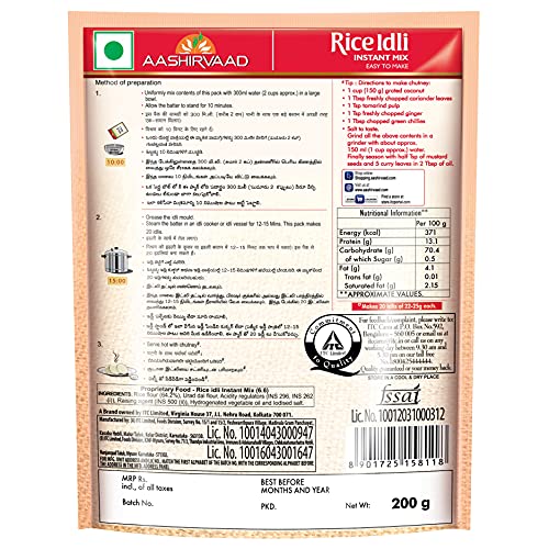 Specification: Aashirvaad Rice Idli, 3 x 200 g