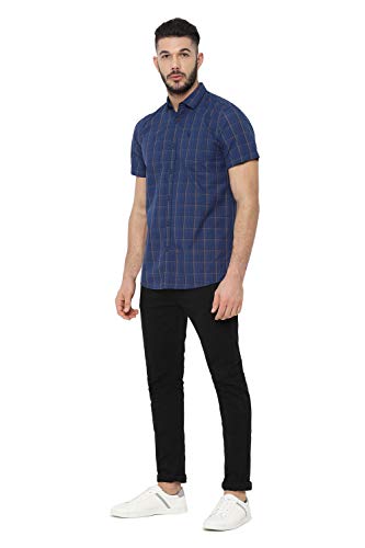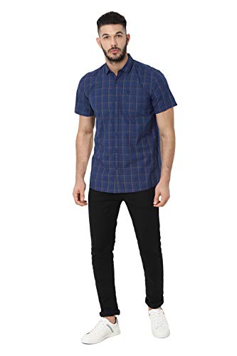 Look effortlessly stylish when you don this navy check shirt, tailored for a Regular Fit, from Solly Jeans Co by Allen Solly.