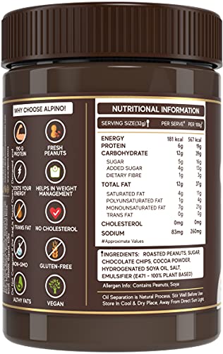 Specification: Alpino Chocolate Peanut Butter Smooth 800 G | Roasted Peanuts, Cocoa Powder & Choco Chips | High Protein Peanut Butter…