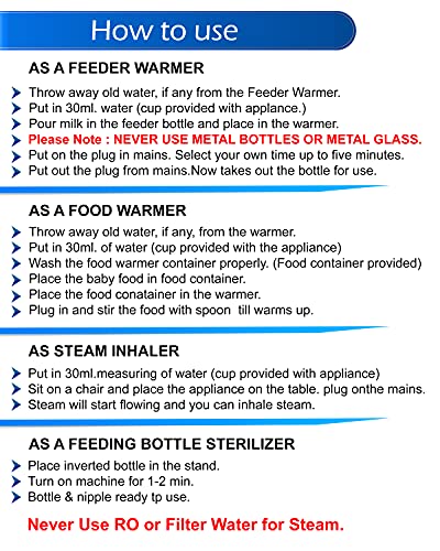 Specification: always4u 4 in 1 Bottle Sterilizer, Instant Food and Bottle Milk Warmer and Baby Steam Inhaler Blue/White