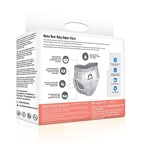 Specification: Amazon Brand – Mama Bear Baby Diaper Pants, New Born (NB) – 82 Count
