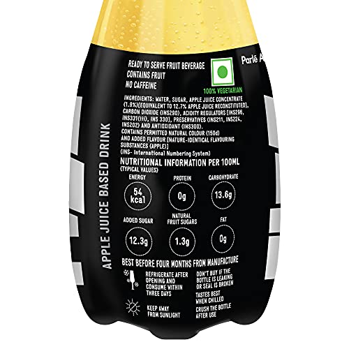 Water, Sugar, Apple Juice, Concentrate (1.9%), Carbon Dioxide (290), Acidity Regulators (INS 296, INS 330), Permitted Class II Preservatives (211, 224, 202) and Antioxidant (INS 300), Contains Permitted natural Colour (150d) And Added Flavour [Nature-Identical Flavouring Substances (Apple)]