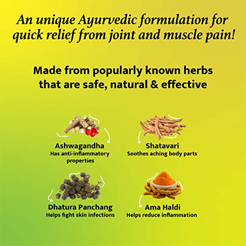 Ingredients : Erandmool (Ricinus communis),Dhatura Panchang (Dhatura metel),Ashwagandha (Withania somniferra),Shatawari (Asparagus racemosa),Ama haldi (Curcuma aromatica),Kuchala (Strychnos nuxvomica),Bachnag (Vatsnav)(Aconitum ferox),Prasarini (Paederia foetida),Gandhapuri Tel,Tarpeen Tel,Karpoor (Cinnamomum camphora),Light Liqid Parafin