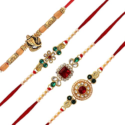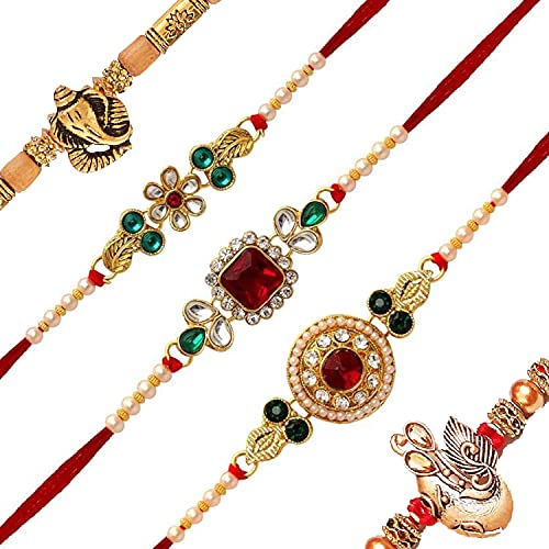 Specification: BANDHAN Kundan Gold Plated Rakhi for Brother Bhaiya Bhabhi Combo (Pack of 5) Bracelet Designer Rakhi for Men (Red)