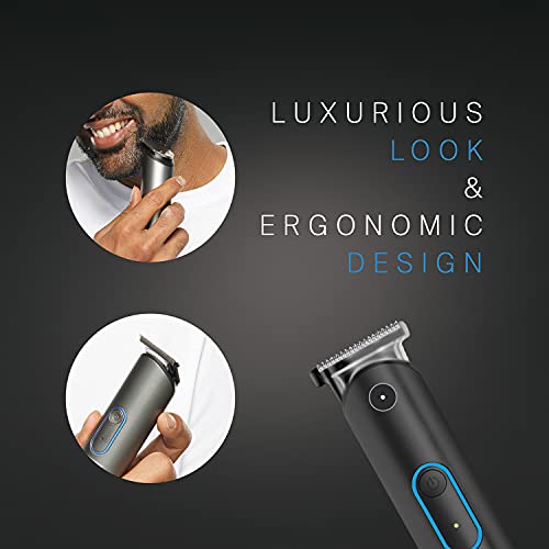 The 2-in-1 grooming tool designed for men to shape and trim beard and hair. Trim your facial hair with stainless steel T blades for precision around sideburns, mustache, neck, and beards. The sturdy and smart Beard Trimmer & Hair Clipper comes with a cordless charging stand and USB cable.