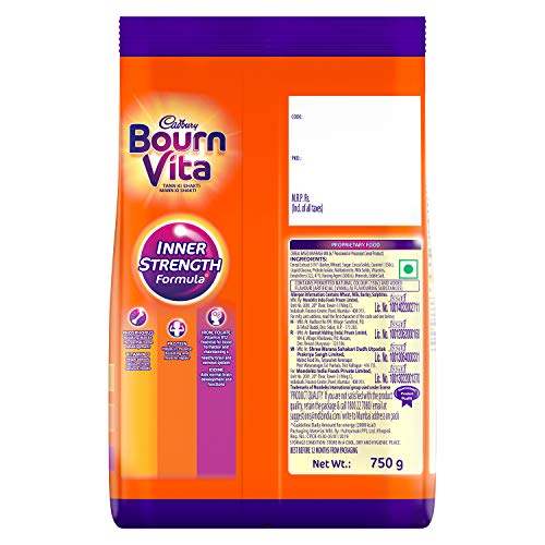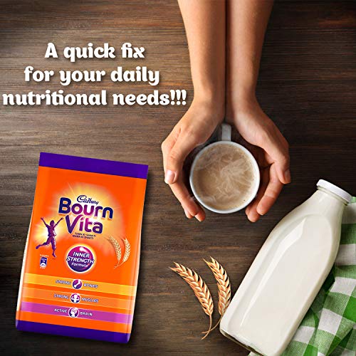 Cadbury Bournvita is a nutrition brand with a 70 year legacy in India. Cadbury Bournvita is a health food drink with inner strength formula which has nutrients that support – Immune system(8 immunity nutrients), Strong bones (Vitamin D, Phosphorous), Strong muscles (Protein, Vitamin D) and Active Brain(Iron, Iodine, Vitamin B2, Vitamin B12). Recommended 2 serves per day as part of a balanced diet and a healthy lifestyle.