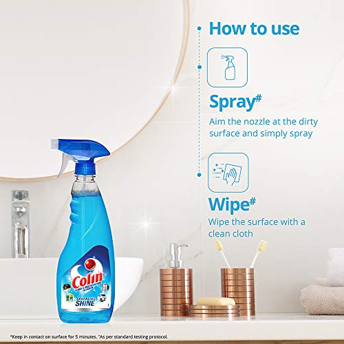 A dirty glass surface can be an eyesore. While dust and germs tend to accumulate on glass surfaces, regularly cleaning them can help retain their shine and luster. To keep your windows, appliances, cupboards and furniture tip-top, the Colin Glass and Surface Cleaner is a must-have among your household cleaning products. Its new powerful formula effortlessly removes hard water stains, accumulated dirt and other tough stains. Colin Glass Cleaner and Surface Cleaner is an all-round household cleaner that keeps your glass surfaces looking like new. It contains vinegar as one of its main ingredients. Vinegar is known for its strong cleansing action that not only removes the dust but makes them simply spick and span. The surface cleaner provides streak free shine and is not too harsh on the skin. Colin has a fragrant formula does not bother your nose. Its convenient trigger helps you spray directly on the stains for maximum effectiveness. It makes cleaning all kinds of glass and generally shiny surfaces as simple as a breeze. Colin Glass and surface cleaner, with the power of shine boosters, besides removing dirt, also provides 2 times more shine than regular cleaners. Colin cleans every surface thoroughly by cutting through all kinds of dirt, oil and grease stains revealing clean and shiny surfaces. Colin glass and surface cleaner is perfect for use on glass surfaces, wash basins and toilets, window grills and pipes, taps, bath tubs and showers, fridge, TV, oven, kitchen cabinets, ceramic floors and wall tiles.