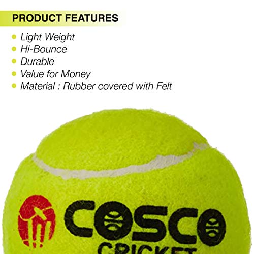 Specification: Cosco Light Cricket Tennis Ball (Pack of 6) Outer Material: Rubber, Color: Green, Standard Size