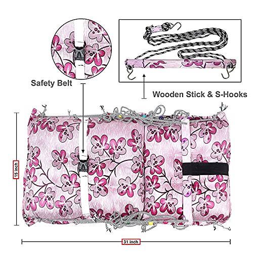 【PRODUCT DETAILS】 Material: Cotton fabric, Fillings: Cotton, ( Color And Design Will Be Same As Shown In Photo ) || Size: Sitting side: 15×15 inch & Back support side: 15×15 inch, Thickness: 4 inch || Age Range: 1 to 8 years || Complete Hanging Accessories: Main unit, Hook, Rope & upper side balancing stick.