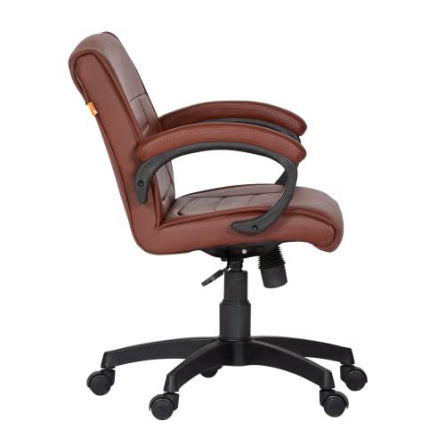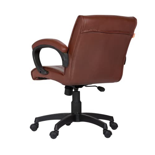 SPECIFICATIONS – Internal frame material: Wood, Upholstery cover: Leatherette | Color: Brown | Size: Mid Back | Tilt Lock | Gas-lift: Class 4 | Base: Heavy Duty Base | Castors: Nylon Dual Color Wheels | Maximum Weight Capacity: Up to 100Kgs | Height Adjustment : 34-39 INCHES | Seat Height : 19-24 INCHES | Seat Width :19 INCHES |Seat Depth : 17 INCHES | Back height : 18 INCHES |