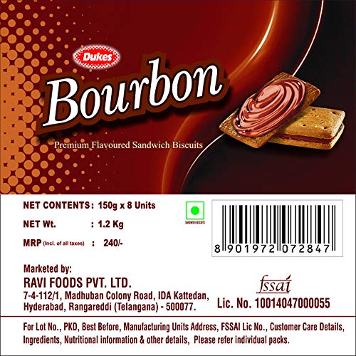 Specification: Dukes Bourbon Premium Chocolate Flavoured Sandwich Biscuit (Pack of 8 – 1080g)