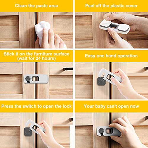 Electomania Child Safety Locks, 5 Pcs Kids Safety Lock for Drawers, Fridge, Cabinets, Strong Adhesive Tape No Drilling…