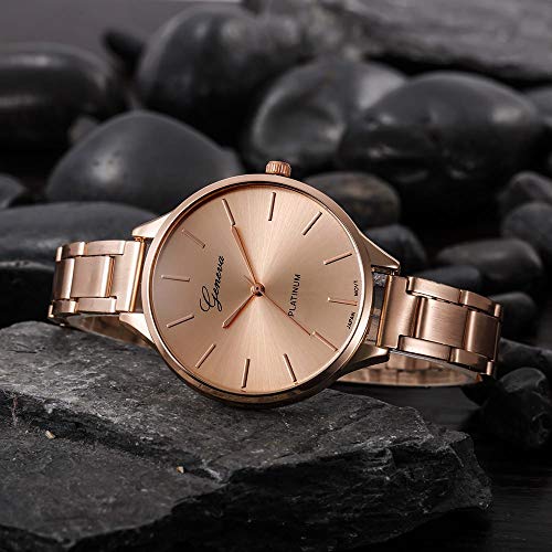 Stay fashionable with Quartz watch from Geneva Platinum available on Amazon. This Analogue watch has Round Rose Gold dial with a dial diameter of 38 mm The Rose Gold colored straps in the watch are made of Metal