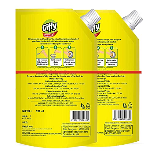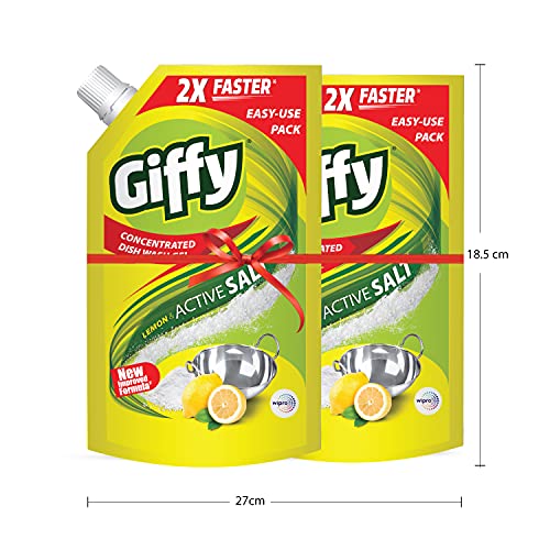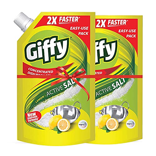 Specification: Giffy Lemon & Active Salt Concentrated Dish Wash Gel by Wipro, 900ml (Pack of 2)