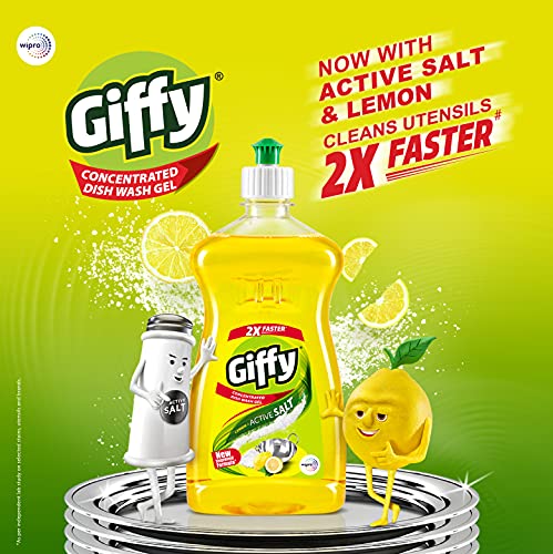Giffy dish wash gel is packed with the benefit of 2 ingredients : lemon and active salt