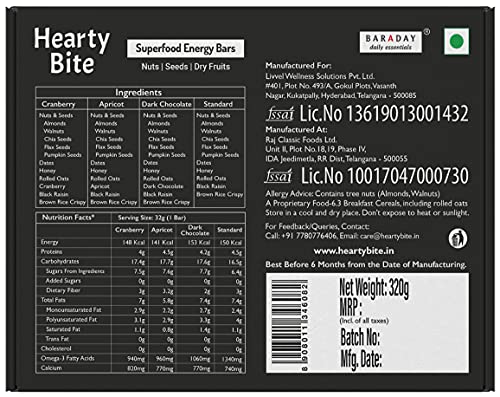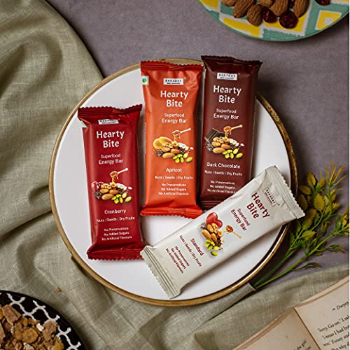 Specification: BarADay Hearty Bite Energy Bars – Assorted Box of 10 (Dark Chocolate, Cranberry, Apricot, Standard) – No Added Sugar…