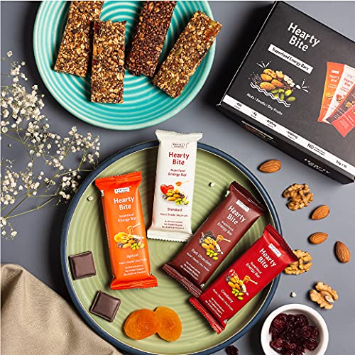 NUTRITION FOR SUSTAINED ENERGY: Hearty Bite Energy Bars are the ultimate performance energy bars, purposefully crafted with clean, wholesome and delicious plant based superfoods with ideal mix of protein, healthy omega fats, and carbohydrates to sustain active bodies before, during long-lasting, moderate-intensity activity, healthy & immunity boosting essential nutrition choice for all age groups.