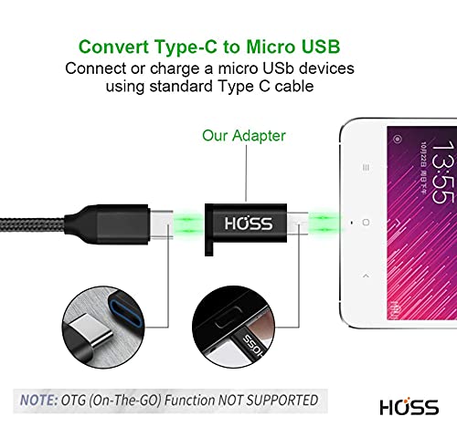 HOSS® Type c Female to Micro USB Male Adapter, Converter USB C to Micro USB, Charger Connector Works with Smartphones…