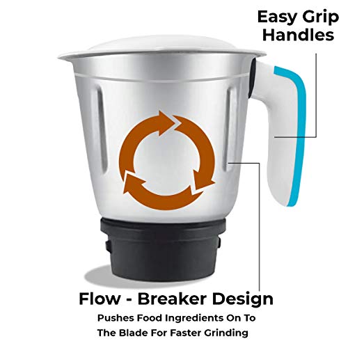 Uniquely Designed Blade and Multi-purpose Jars: Jazz Plus blades are specially designed to enable uniform and powerful grinding. They are durable & are made of high-grade Stainless Steel. Jazz Plus comes with 1.5L SS Liquidizer Jar, 0.8L Dry Grinding Jar & 0.4L SS Chutney Jar