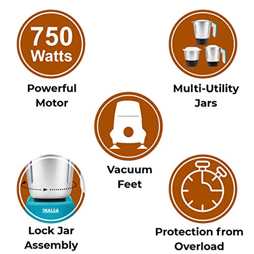 Specification: Inalsa Mixer Grinder 750W- Jazz Plus with 3 Stainless Steel Jars|2 years Warranty (White/Green)