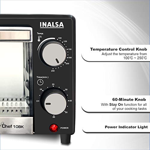 Specification: Inalsa Oven MasterChef 10BK OTG (10Liters) with Temperature Selection 800 W, Powder Coated Finish, Includes Baking Pan…