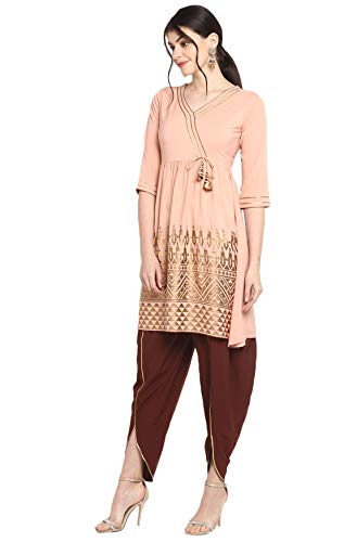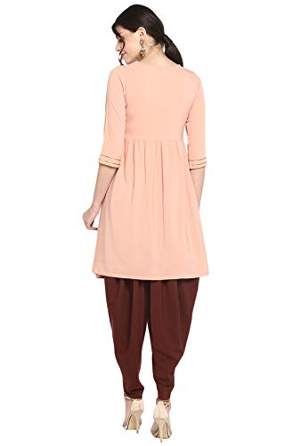 Specification: Janasya Women’s Peach Poly Crepe Flared Kurta With Dhoti Pant