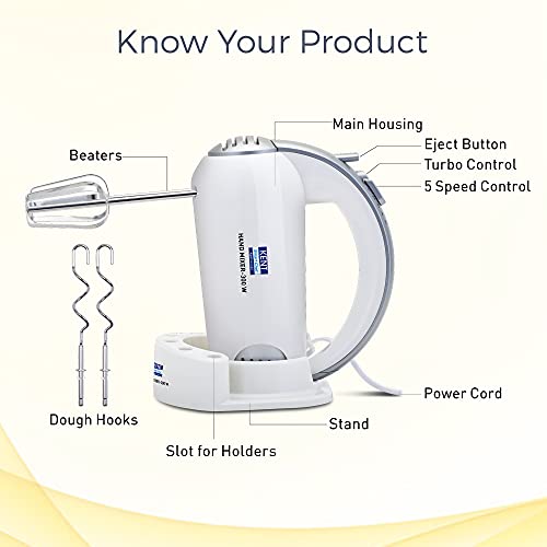 Includes Kent Hand Blender-300W-01, Beaters-01 Set, Dough Hooks-01 Set, Stand-01, User Manual