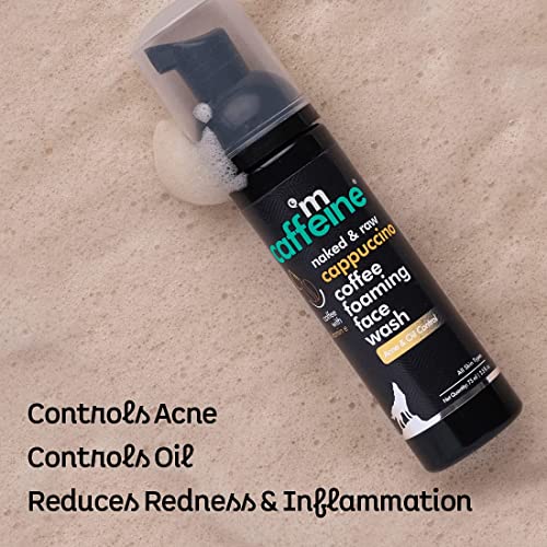 CONTROLS ACNE, REDUCES REDNESS & INFLAMMATION, CONTROLS OIL: Begin your daily skincare regime with the Naked & Raw Cappuccino Coffee Foaming Face Wash for oil-free skin. It kills 99.9% of acne causing germs that makes it perfect for acne-prone skin. This acne face wash helps control acne and reduces redness & inflammation. It is a foam-based face wash that exudes the aroma of roasted Coffee with spicy notes of Cinnamon.