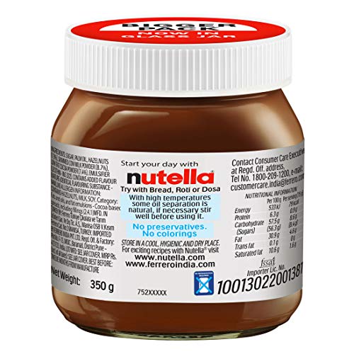 Specification: Nutella Hazelnut Spread with Cocoa (Labels may vary), 350g