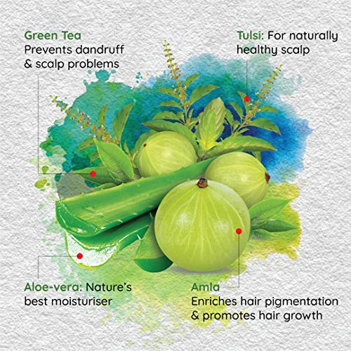 With goodness of Aloe Vera, Tulsi, Amla and Green Tea, the shampoo conditions your hair thoroughly