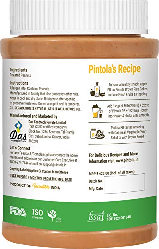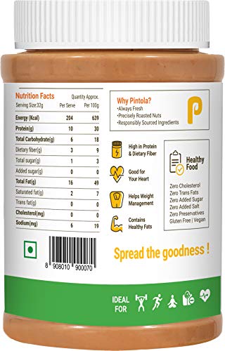 Specification: Pintola All Natural Peanut Butter (Crunchy) | Unsweetened | 30g Protein | Non GMO | Gluten Free | Vegan | Cholesterol…