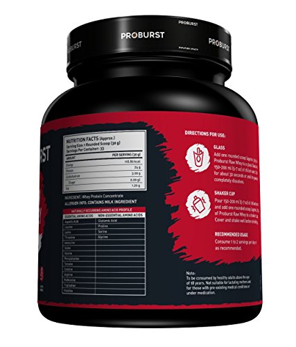 The Proburst raw whey protein 1 kg unflavoured sets a higher benchmark of performance for other protein supplements. Each serving (30g) of this raw whey protein helps to deliver every fitness enthusiasts unsweetened whey protein concentrate. As it comes with a neutral tasting composition, the fitness enthusiast has the flexibility to add flavours as per their choice. Each pack of Proburst raw whey protein 1 kg goes through several tests to guarantee 80 percent protein content per serving.