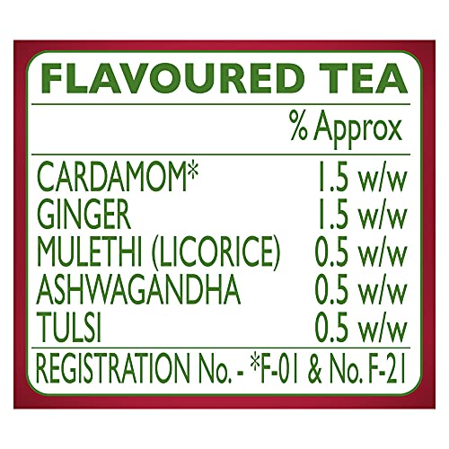 Red Label natural care is from the house of Brooke Bond and the brand Red Label. Red Label natural care tea contains the goodness of 5 natural ingredients – cardamom, ginger, tulsi, mulethi and ashwagandha that enhance immunity, improving your body’s natural defence and helping you fall ill less often. These 5 ingredients give a unique flavour resulting in a tasty, rich cup of tea. Based on health benefits as per ayurvedic texts, ashwagandha helps cope with stress, mulethi (liquorice) helps soothe the throat, tulsi helps build body resistance, cardamom helps in digestion and ginger helps protect from cough and cold. Disclaimers: as per ayurvedic texts and human studies on nk cell activity, the mix of natural ingredients in red natural care tea helps protect from cold, cough and flu. Red natural care tea helps build immunity against common ailments. Contains added natural flavours. For over 140 years, Brooke bond’s experts have blended the teas to create your perfect cup of tea. The Brooke bond tea excellence centre comprises of experts that create the blend of teas as signature offerings to delight your senses.