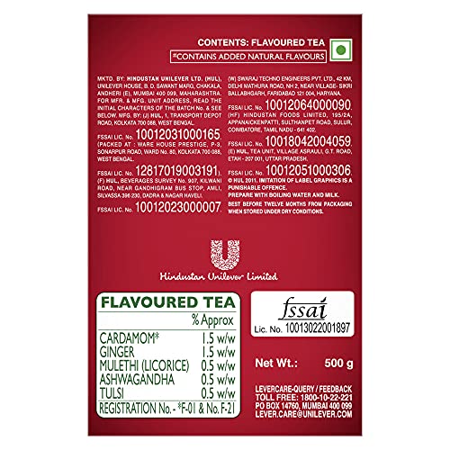 Specification: Red Label Natural Care Tea, with 5 Ayurvedic Ingredients, 500 g