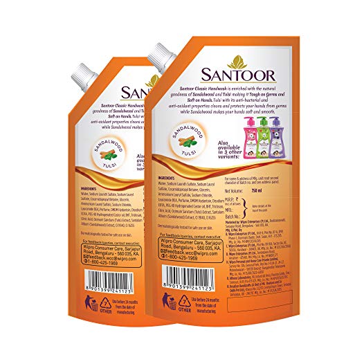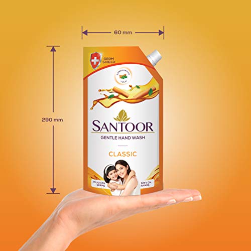Specification: Santoor Classic Gentle Handwash with Sandalwood and Tulsi for Bacteria and Germ Protection, 750ml, Pack of 2