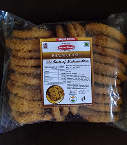 Specification: Swaad Foods – Bhajni Chakli – The Taste of Maharashtra | 500gm (450gm + 50gm Extra) | Fresh & Crispy | Ready to eat…