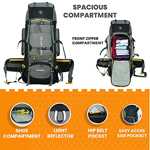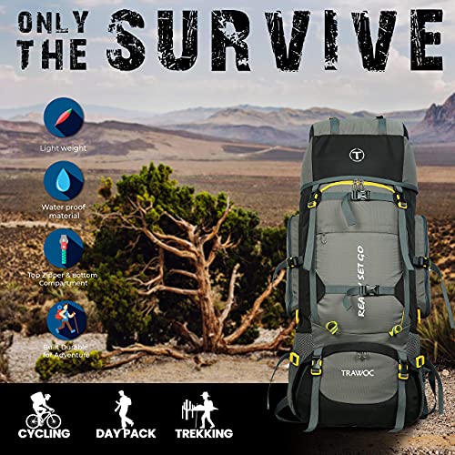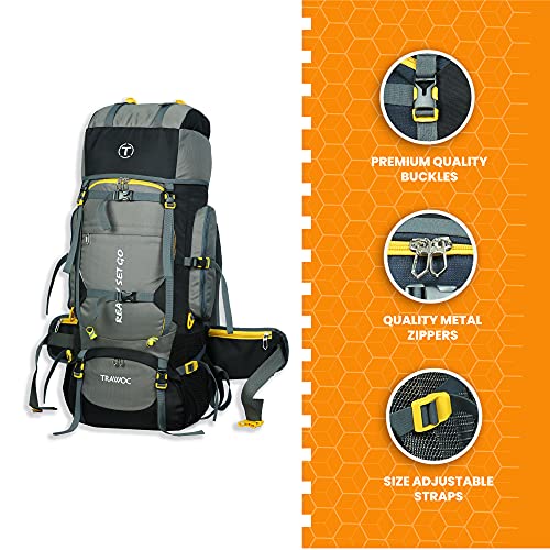 TRAWOC 80L Travel Backpack for Outdoor Sport Camp Hiking Trekking Bag Camping Rucksack HK007 (Grey) 1 Year Warranty