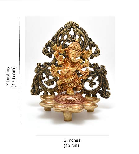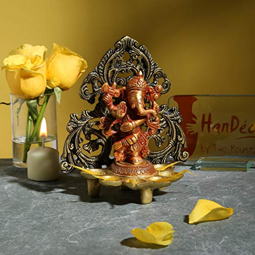 Specification: Two Moustaches Dancing Ganesha Carving Brass Diya Stand- Antique Brown | Home Decor |