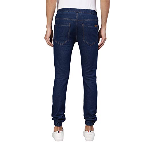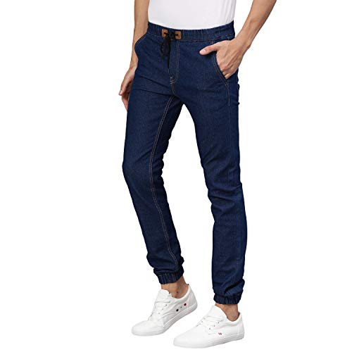 Stylish & Trendy Solid Pattern Dark Blue Jogger Jeans – Elasticized Waistband with Drawstring & Elasticized Ankle Rib