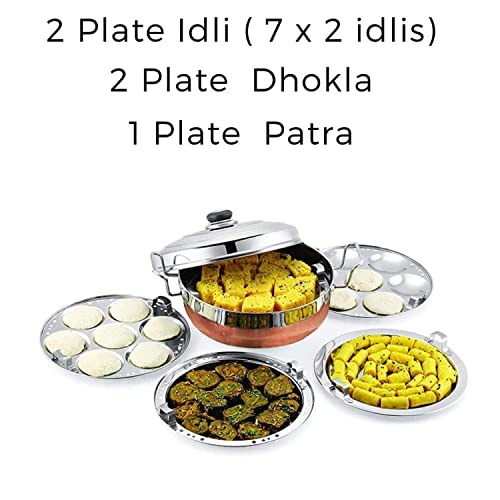 Specification: WayMore® Stainless Steel Idli Dhokla Cooker Multi Kadai with Copper Bottom All-in-One Big Size 5 Plate, 2 Idli Steamer…